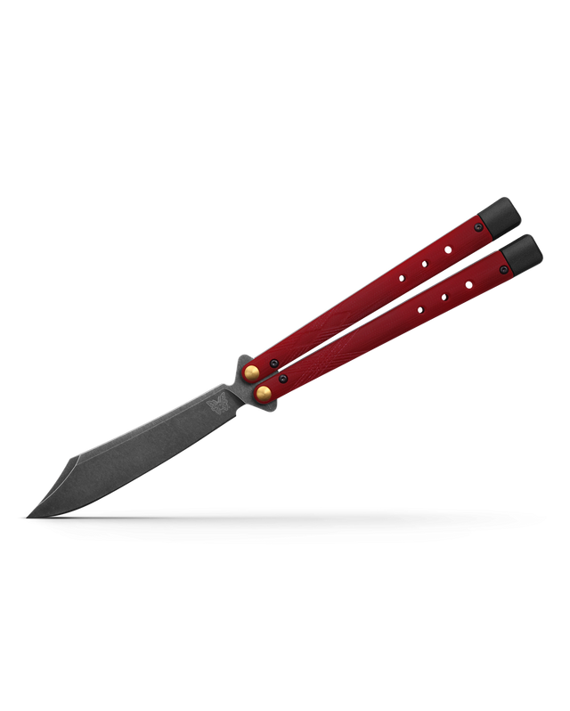Introducing the 99 Necron™, a high-performance butterfly knife with a focus on flipping, available in two highly customizable variants that pay homage to Benchmade’s roots with a return to our Bali-Song’s classic form and added bonus features. Optimized for expert flippers with latchless G10 handles and a CPM-S30V Scimitar blade, fine tune Necron™ ’s balance and speed with adjustable tungsten weights and extendable handles for your perfect flip and desired feel. Now available with Jade or Ruby Red G10 handles, and a trainer variant for mastering your technique. Finished off with a hollow diamond texture found on the safe handle to give the user a tactile indication between the safe and bite handles.