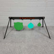 Our PERFECT Rimfire Gong Stands are constructed from 100% high quality 3/16″ armored plate steel. The entire system, including the gongs, cross bar, and legs, are made of the same 3/16″ armored plate.  There are no welds, nuts, bolts, or screws and the stand assembles in seconds without tools.  Stores and lays completely flat, taking up a space that is only 4″ wide. The target stands 14″ tall when assembled and rings like a bell when hit!  The system is specifically designed for LONG GONG competitions.