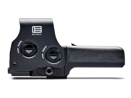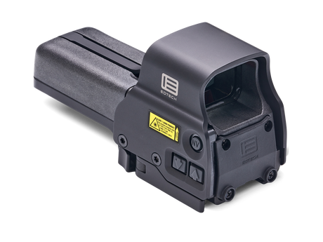 The EOTECH® magnifiers are designed to be used behind an EOTECH Holographic Weapon Sight (HWS®). The magnifiers can be mounted directly behind the HWS. Simply switch the magnifiers out of the way for quick 1X targeting. When used with HWS Models 518, 558 and EXPS (with side button interface), the user can easily operate the sight even with the magnifier engaged.